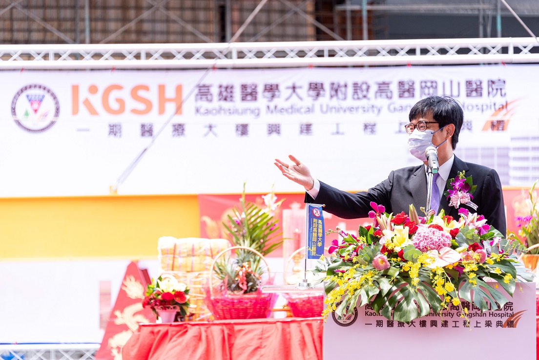 高雄醫學大學陳建志董事長表示,高醫始終扮演為民眾健康把關的角色,用心經營高雄醫學大學及所屬的每一家醫院,就在上個月附設中和紀念醫院成立65週年;由市府委託經營的小港醫院也完成新建大樓上梁典禮;大同醫院、旗津醫院也日益成長茁壯,並提供長照的服務需求。高醫沿著捷運紅線,從南到北串起體系在高雄的醫療照護網絡,讓在地居民可就近到這裡看病,甚至是搭乘捷運就可快速地進入醫院。感謝市府、捷運公司等單位在疫情期間的鼎力協助,讓高醫岡山醫院工程順利,明年5月試營運。