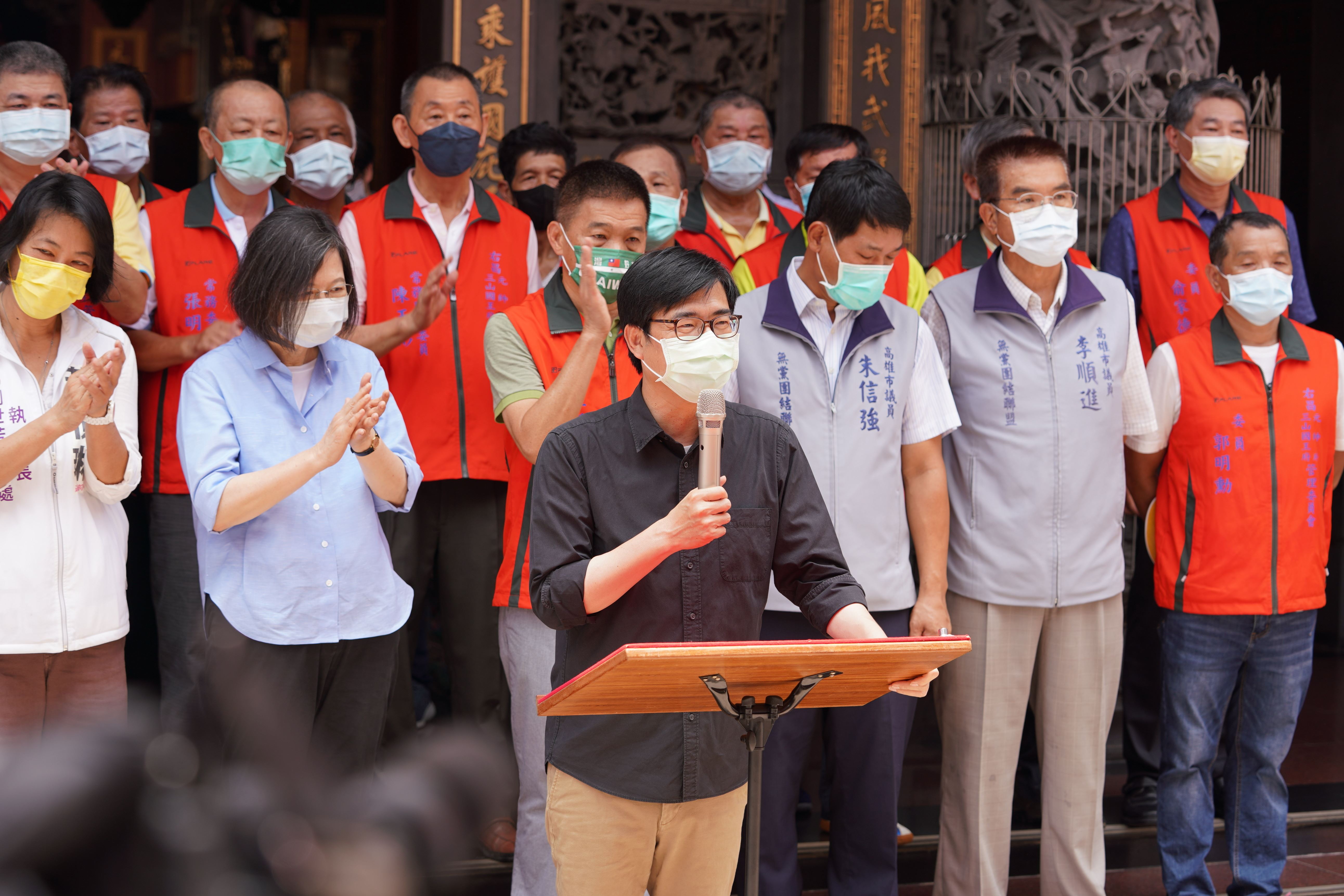 高雄市長陳其邁今(22)日陪同總統蔡英文至楠梓右昌訪視楠梓區建佑藥局,一同聽取簡報了解高雄市基層藥局辦理「送藥到府專案」的流程及執行成果,高雄共有256家藥局提供送藥到府服務,累計24,668件為全國第一;市府自5月26日起額外並再提供補助每趟200元,以補貼藥師送藥到府交通費、通訊費等,提高藥師加入送藥到府意願。