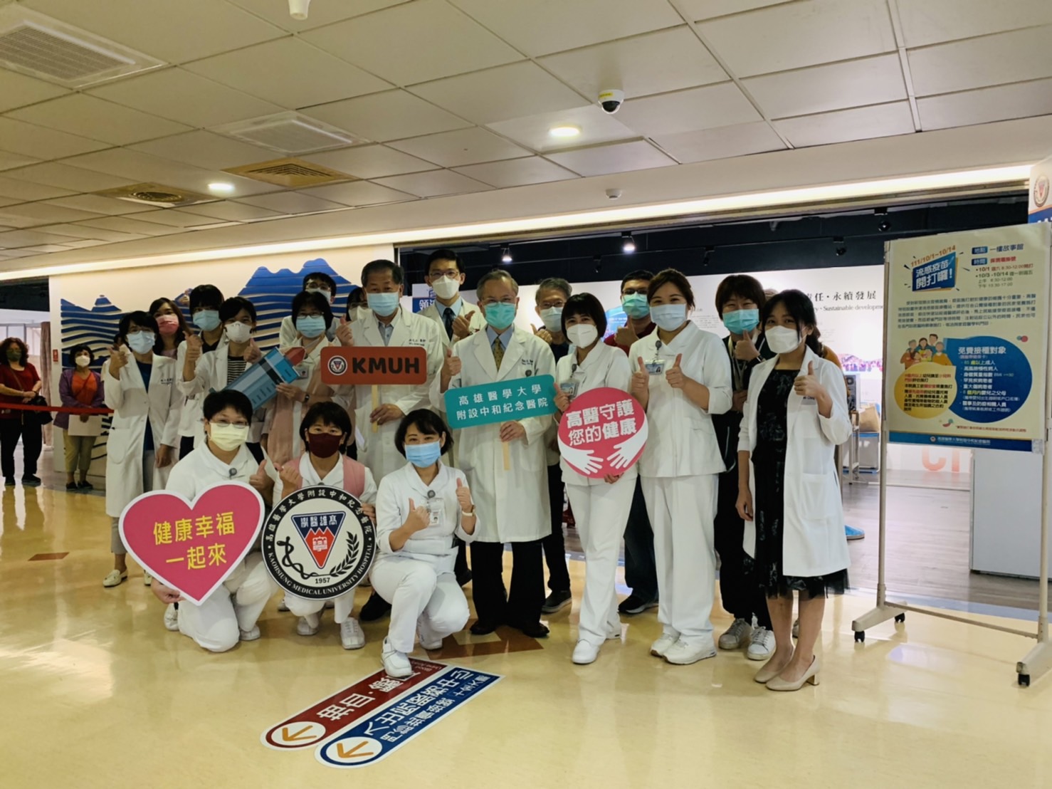 高雄醫學大學附設中和紀念醫院院長鍾飲文表示,受到新冠肺炎疫情威脅,疫苗施打對於健康的維護十分重要,高醫特別設置快速流感疫苗接種站,從10月1日至14日期間,在一樓「故事館」,10/1(星期六)上午8:30至12:00,10/3日起星期一至五上午8:30至12:00,以及下午1:30至5:00,提供符合公費接種對象的民眾免費施打流感疫苗。前往快速站經過醫師評估後,馬上就能接受疫苗接種。不僅免掛號費,而且節省門診等待時間。注射站設立以外的時間,民眾也可在各門診就醫時順便施打,或洽詢家庭醫學科門診。