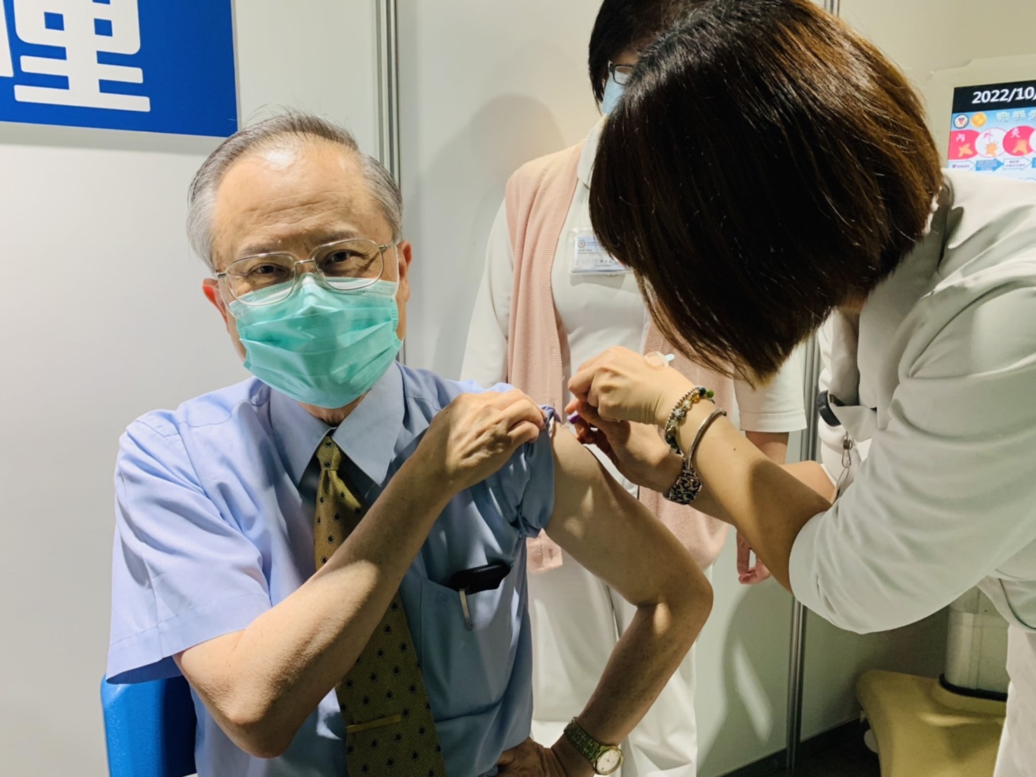 開打第一天,70歲的陳先生一早醫院開門就來排隊,每年都來接種流感疫苗,還秀出健保卡上的COVID-19疫苗注射貼紙,直說:「打了有保護力,身體健康疫苗不可少!」,