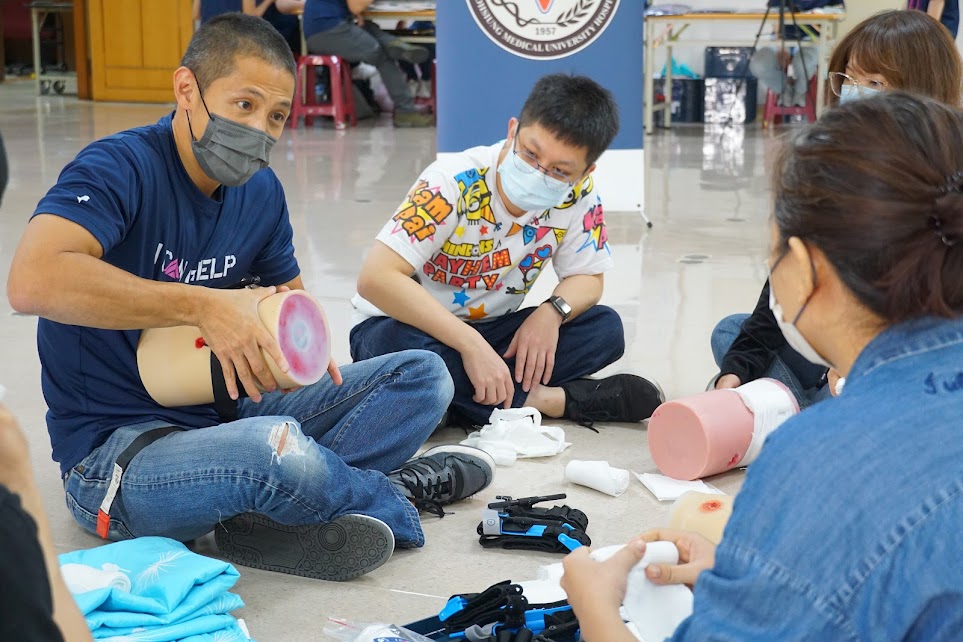 高雄醫學大學附設中和紀念醫院(以下簡稱高醫)與壯闊台灣聯盟於10月23日合辦一場「後盾計畫I Can Help」基礎與進階課程,吸引了近百名學員參加,由高醫外傷科及重症外科醫師透過一系列課程,指導學員學習緊急應變、止血與簡易搜救等技能,當災害來臨前可以拯救自己與他人。