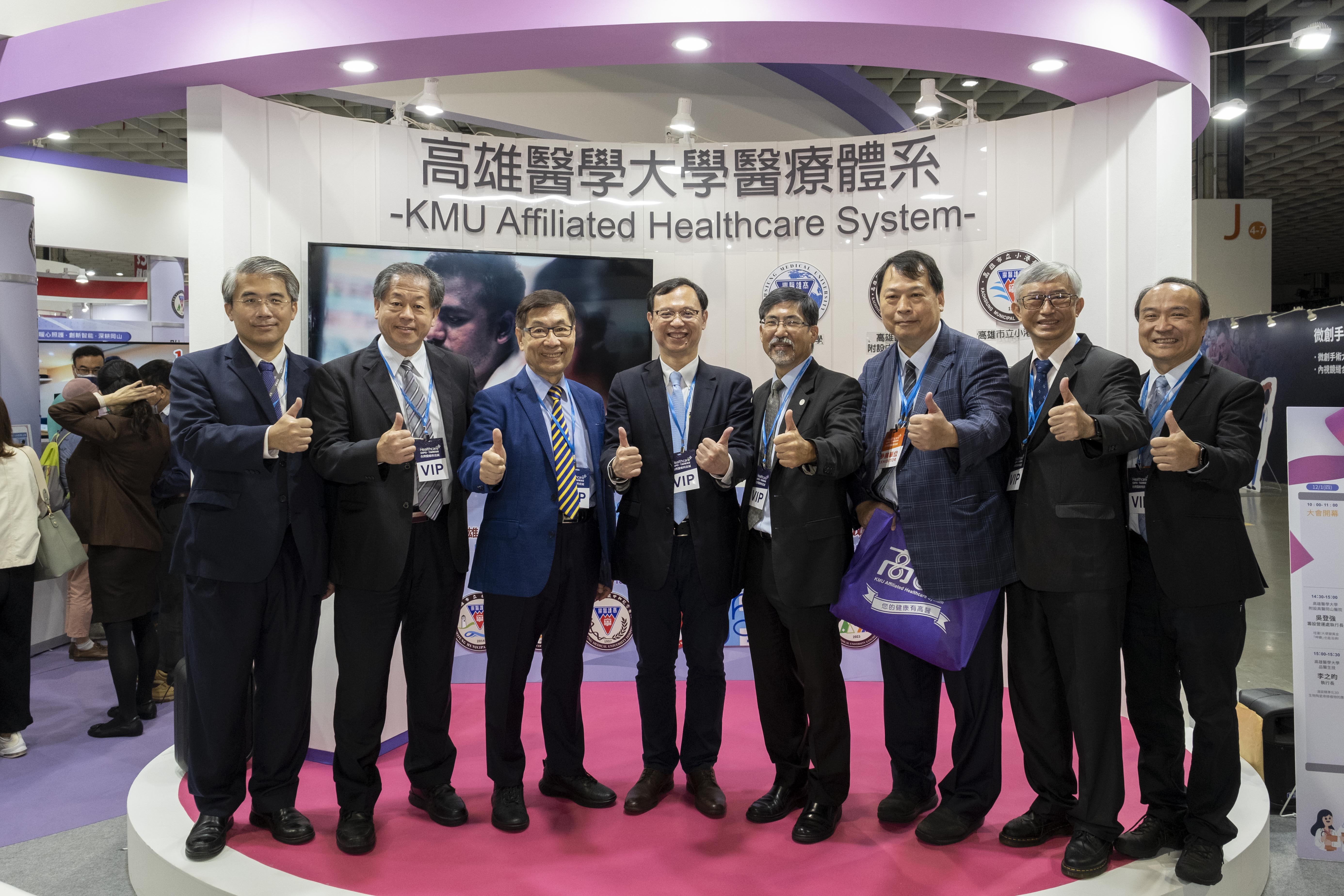 高雄醫學大學董事會陳建志董事長、高雄醫學大學吳登強副校長、高雄醫學大學附設中和紀念醫院吳文正副院長、小港醫院黃鵬如副院長、大同醫院傅尹志院長、旗津醫院蔡忠榮院長、越南胡志明醫藥大學附設醫院黎明魁副院長、越南震興醫院陳團道院長連袂出席醫療科技展,並於會場內啟動交流儀式,正式宣告與兩所越南醫療院所展開合作交流。