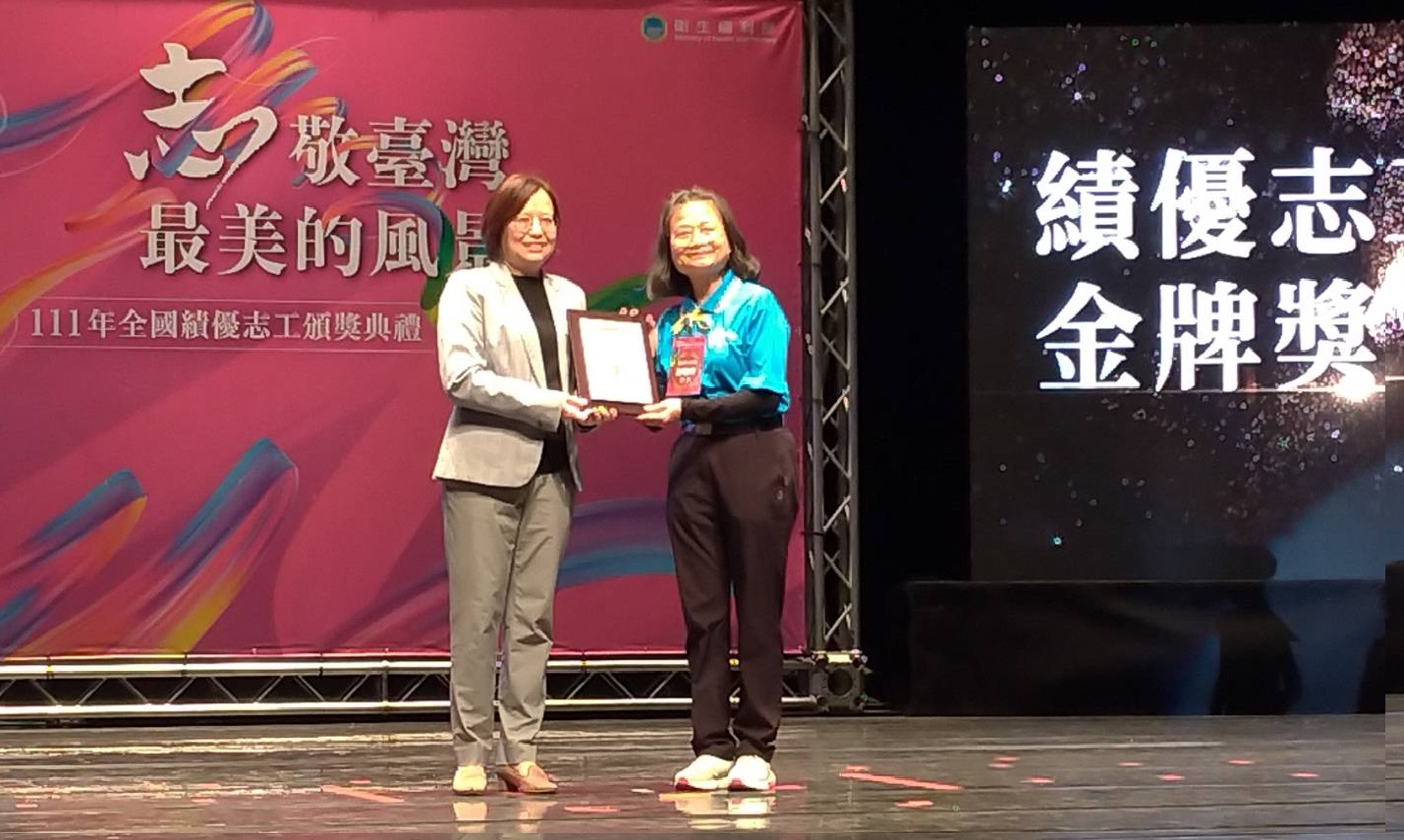 「來,我們把口罩戴好,這樣可以保護自己、也保護別人」。在高雄醫學大學附設中和紀念醫院精神科門診,有位穿著高醫志工背心、身材嬌小的女士,正用著輕柔的語調跟病人說話;其親切的服務,已持續超過20年,奉獻時數超過8000多小時,日前榮獲衛生福利部表揚全國志願服務金牌獎。