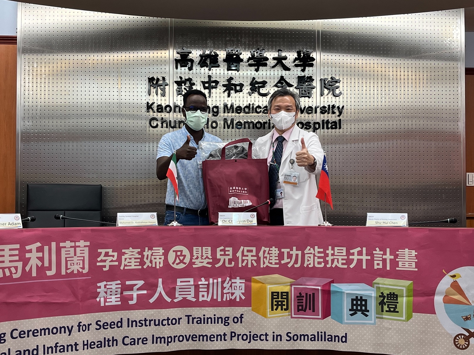 據統計,索馬利蘭孕產婦死亡率為是台灣的45.7倍、嬰兒死亡率為為台灣的24倍、新生兒死亡率為台灣的1.7倍。在第二批學員開訓典禮中,高醫戴嘉言(右)副院長表示,高醫身為大學附設醫院暨醫學中心,為善盡地球公民的責任,期望將臺灣的優秀孕產婦、嬰兒及新生兒的照護技術毫無保留地傳遞給索馬利蘭,這也是高醫繼2015年協助索羅門群島達成聯合國千禧年宣言目標後,再次呼應聯合國永續發展目標降低孕產婦死亡率及新生兒死亡率所承擔的重要任務。