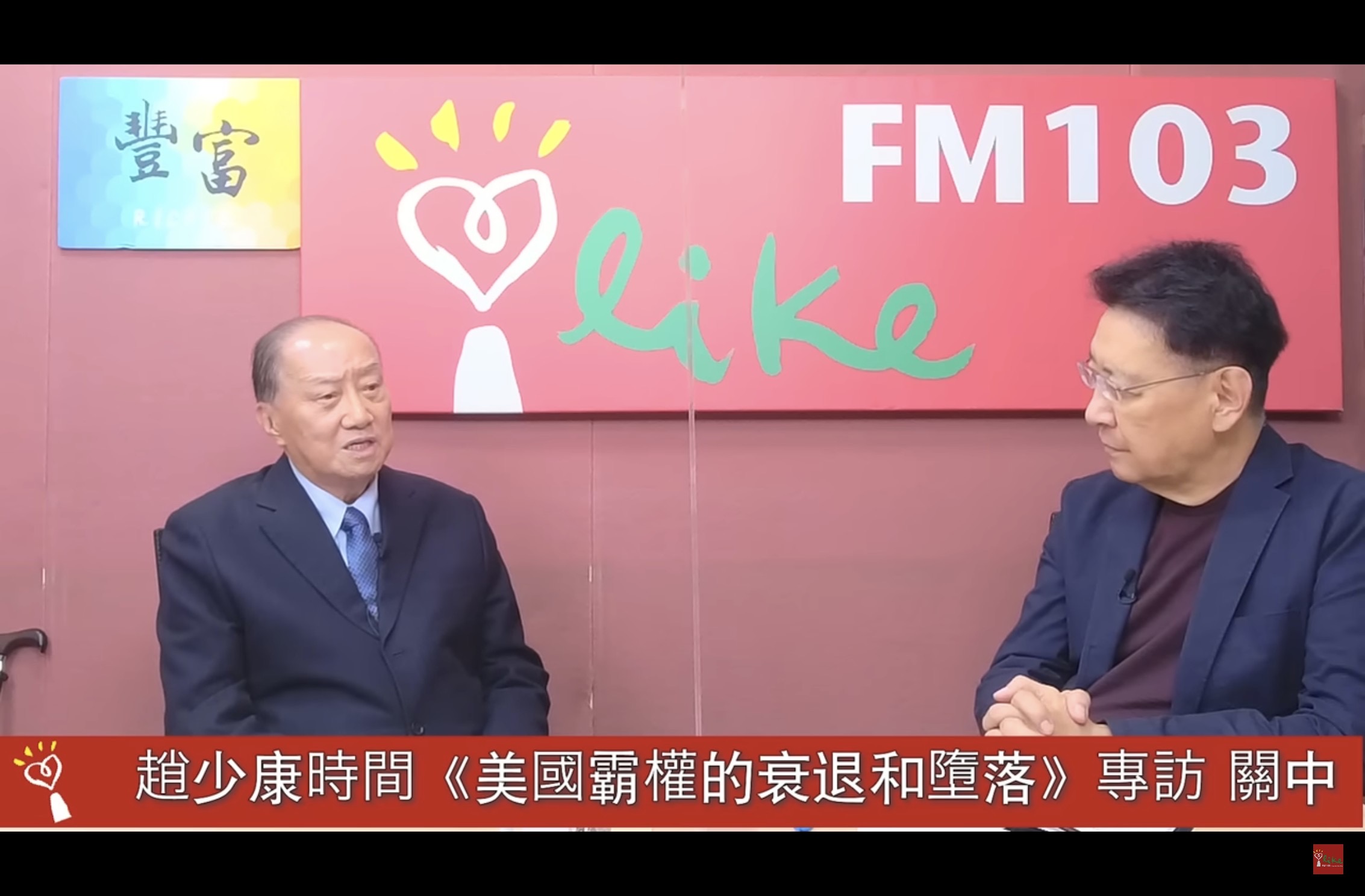 關中在「趙少康時間」受訪,談其新書《美國霸權的衰退和墮落》