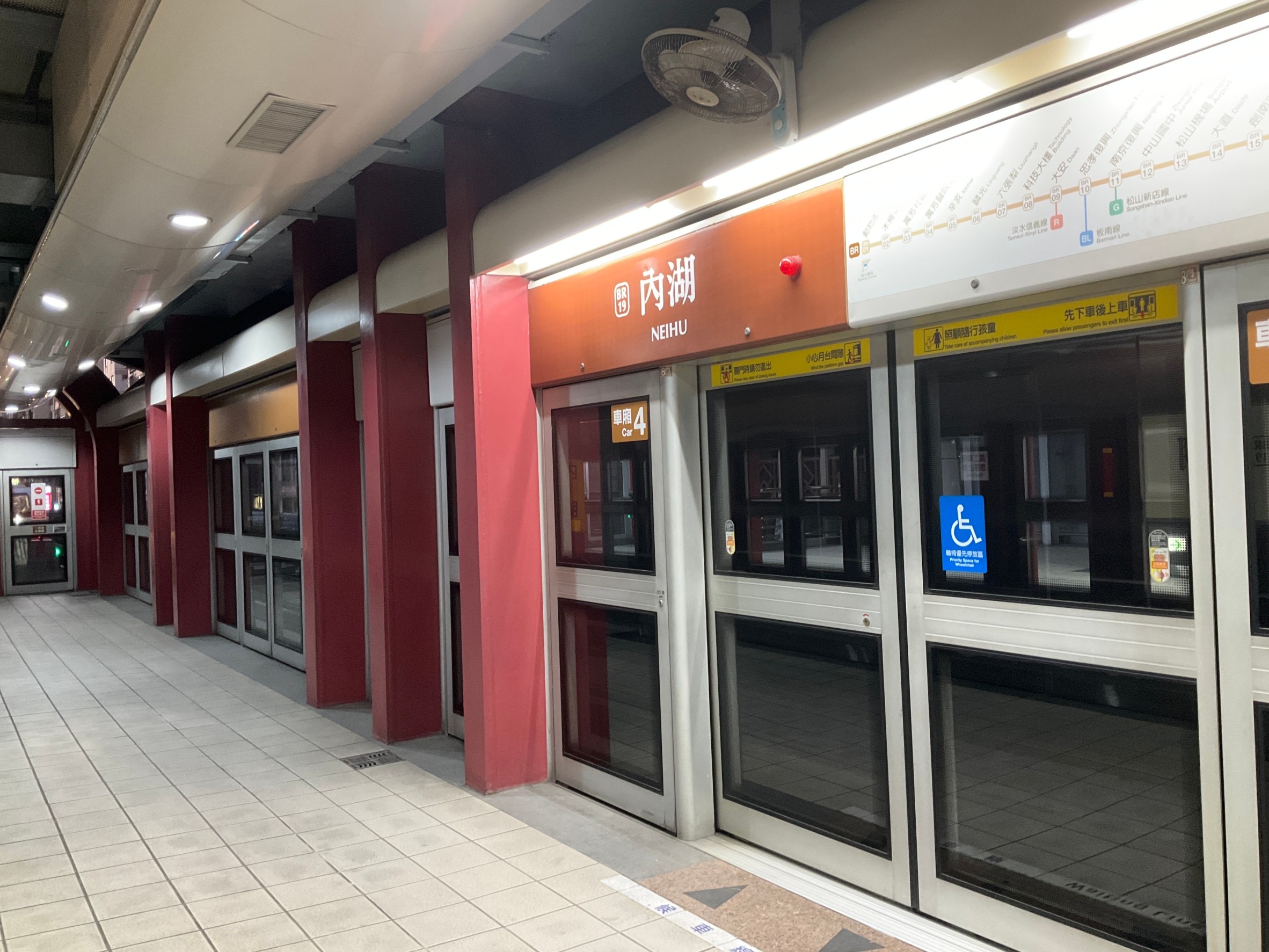 3、文湖線長久以來由於只有行駛四節車廂、所以設計六節車廂的月台、在現行四節車廂的前後各一節車廂長度的月台、都是以鐵鏈或是其他方式隔離者、一般的乘客少有察覺到這個現況。