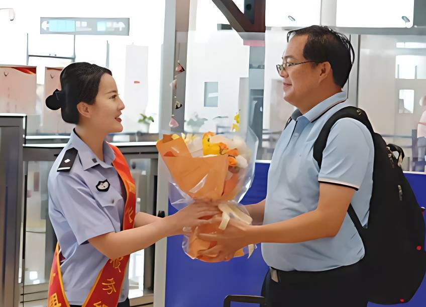 金廈航線第2000萬名旅客蔡弼凱,剛出關就獲贈鮮花