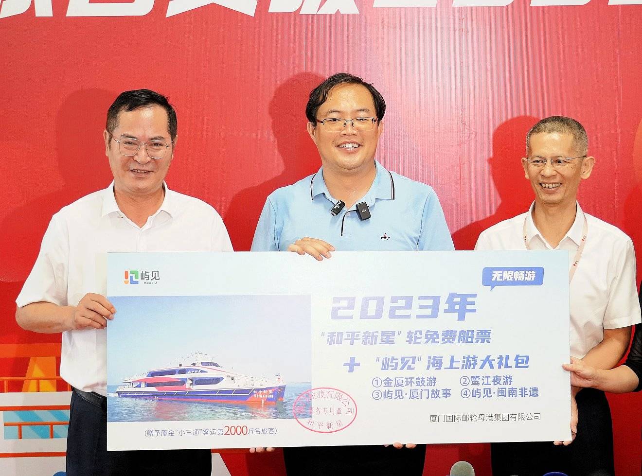 金門與廈門「小三通」金廈航線,歷經23年第2000萬名旅客蔡弼凱,於7月4日上午,從金門搭乘「金瑞龍」號客輪,抵達廈門五通客運碼頭。