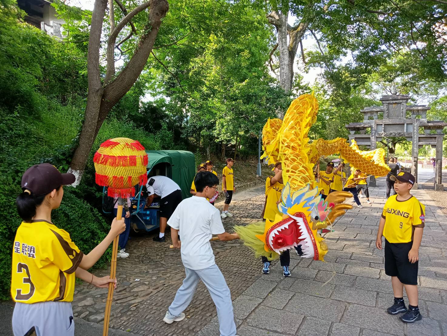 舞龍是培田村地方過年、喜慶活動時的習俗,為了讓小朋友也能體會一下舞龍的樂趣,特別在村口安排一條黃龍,給8支前來參訪的球隊小朋友,學習舞龍的技巧。