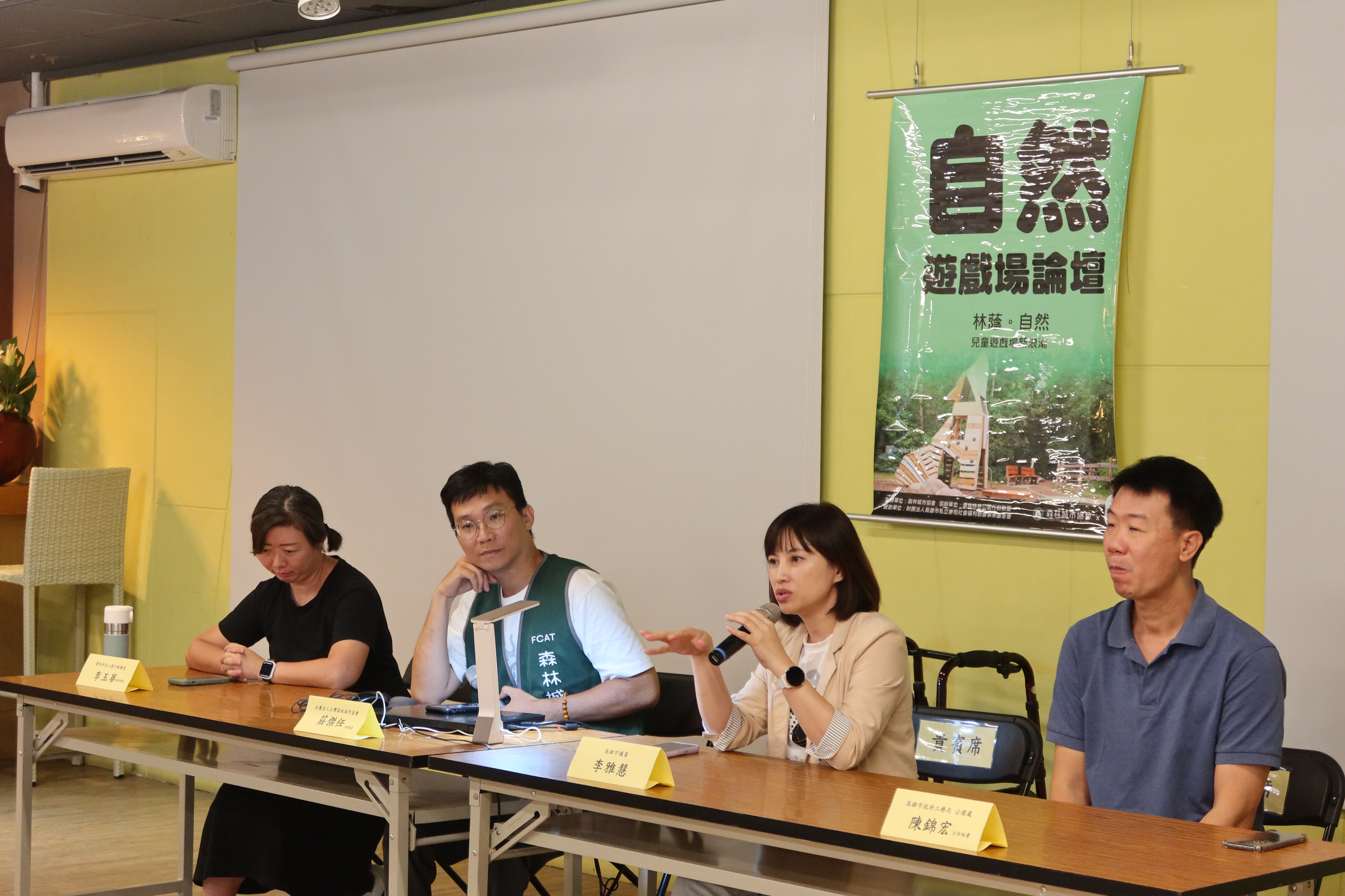 為了讓公園找回林蔭,讓遊戲場能成為兒童自然遊戲的場域,森林城市協會與還我特色公園行動聯盟、財團法人高雄市私立康和社會福利慈善事業基金會,於9月9日下午,舉辦了一場「自然遊戲場論壇」,主講人是特公盟副理事長李玉華、森林城市協會理事長莊傑任,邀請高雄市議會特色公園小組召集人李雅慧議員、高市府公園處主秘陳錦宏與會論壇,還有四五十位民眾於風雨中依然熱清參與,都讓今日的盛會別具意義。
