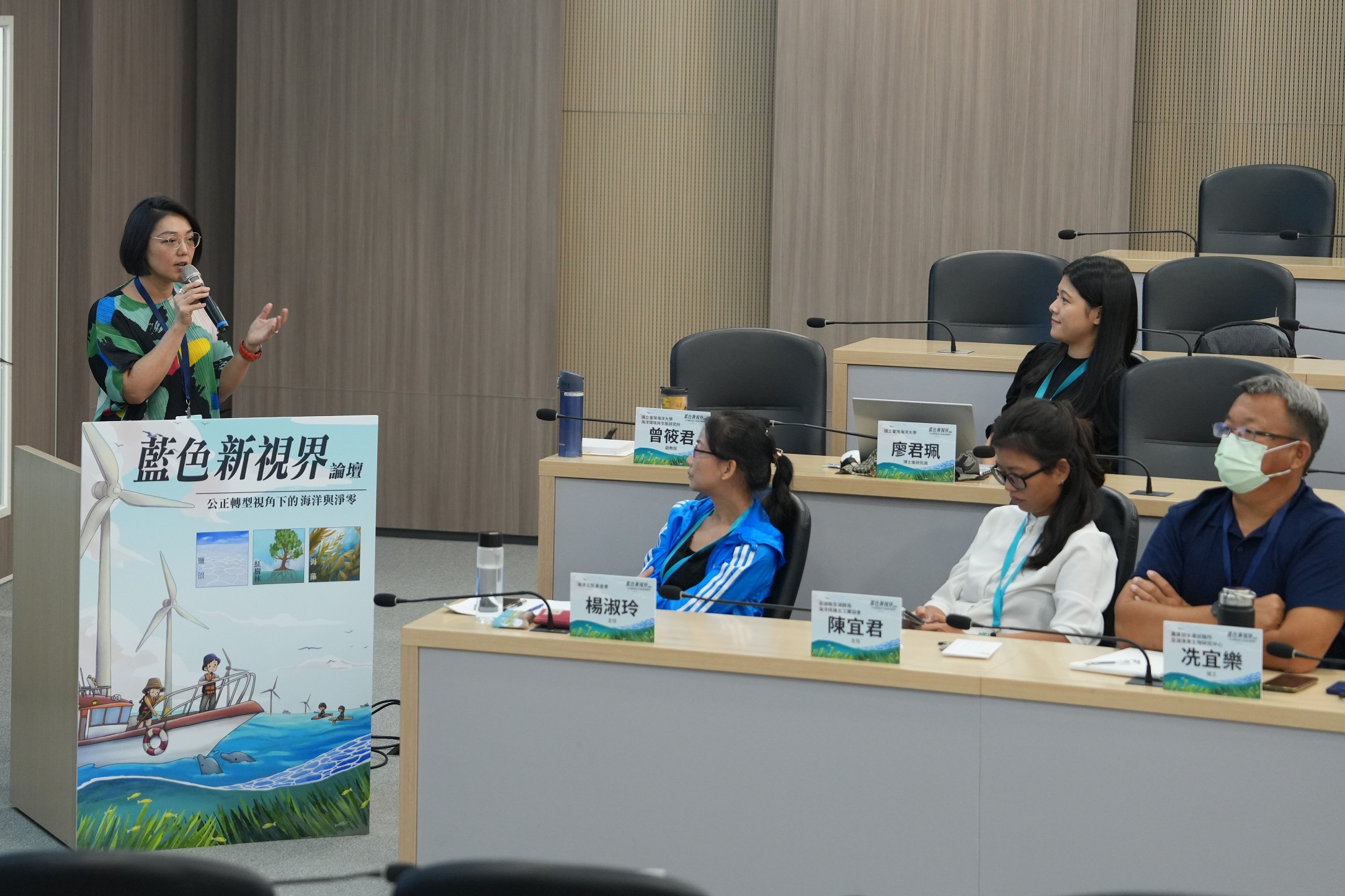 海洋委員會副主任委員洪文玲表示,海洋委員會作為海洋事務的協調與統合機關,對於淨零公正轉型的態度是結合學術、連結在地及誠心參與,結合學校的學術量能,應用到實際的社會議題上,並且邁出教室,深入在地認識與了解真實狀況,發掘平時隱而未見的利害關係人和議題網絡,帶到這兩天的劇場及論壇上來討論,而海洋委員會也誠心地持續參與及推動海洋與淨零的議題。