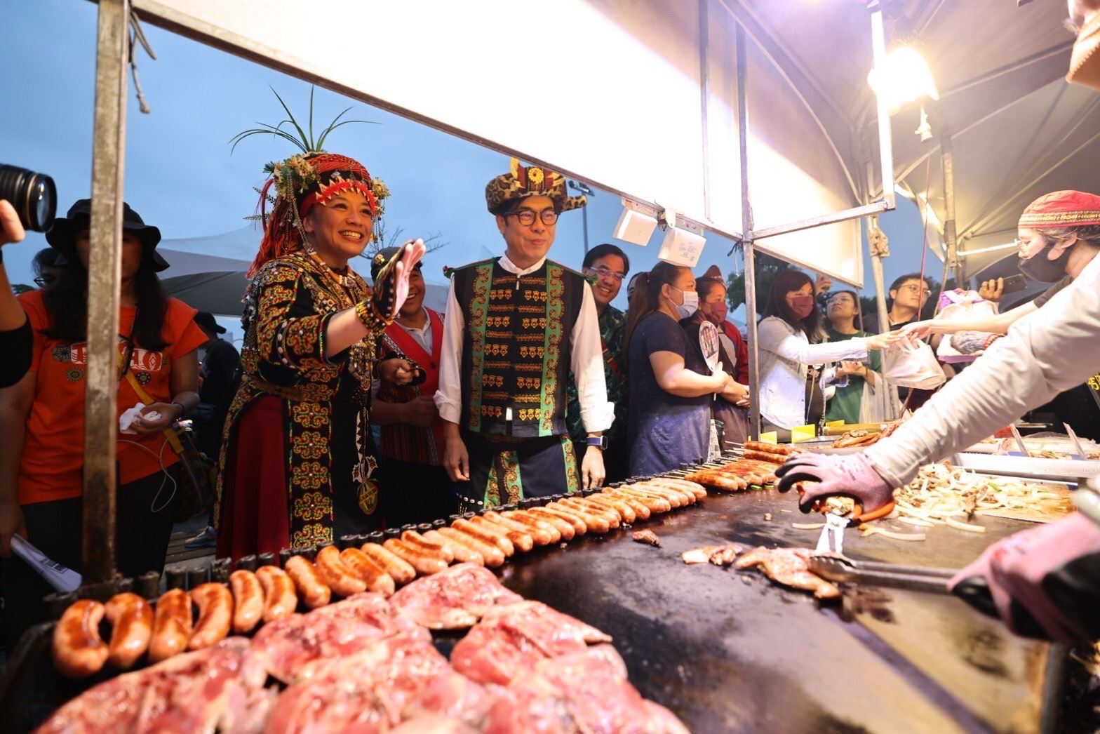 高雄市原住民族聯合豐年節「高雄豐潮」今(11)日傍晚舉行開幕儀式,市長陳其邁穿著茂林魯凱族傳統服飾盛裝出席。他表示,本次豐年祭由市府各局處共同努力籌措舉辦,另外那瑪夏那次蘭吊橋、卡那卡那富祭儀場,桃源區龍橋、建國橋緊急流籠、愛玉館整修、茂林高132工程、布魯布沙吊橋、萬山避難屋及原住民族故事館重新開館等多項工程,上任後投注原民重大建設經費共約10億元,市府對原住民族相當重視。