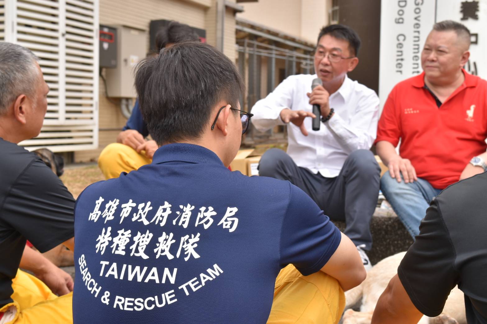 許智傑表示,去年的時候就有來到高雄市消防局位於楠梓的搜救犬訓養中心,當時看見訓練有素的汪汪隊員們在執行演訓任務時的表現就令他印象深刻,這次的403花蓮地震更是將平時的訓練成果展出,一舉讓世界認證台灣特搜隊的能力!這次特別媒合頂麻吉寵物食品有限公司的顏經綸董事長,再度致贈營養零食慰勞辛苦的搜救汪旺隊員。