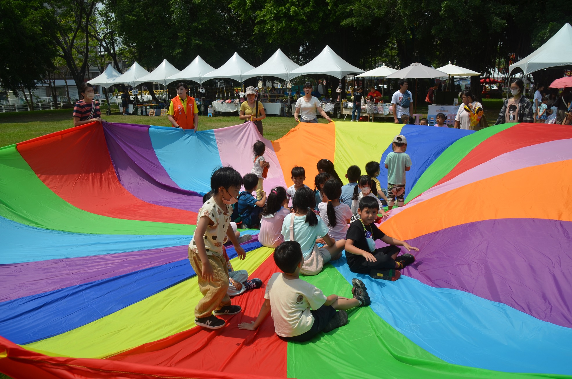 園遊會在大東捷運站一號出口旁舉行,很多家長帶著心愛寶貝參加,熱鬧滾滾。高雄市社會局長謝琍琍、鳳山區長石慶豐、立委林岱樺、許智傑、市議員鍾易仲、李雅靜、劉德林等出席同樂。