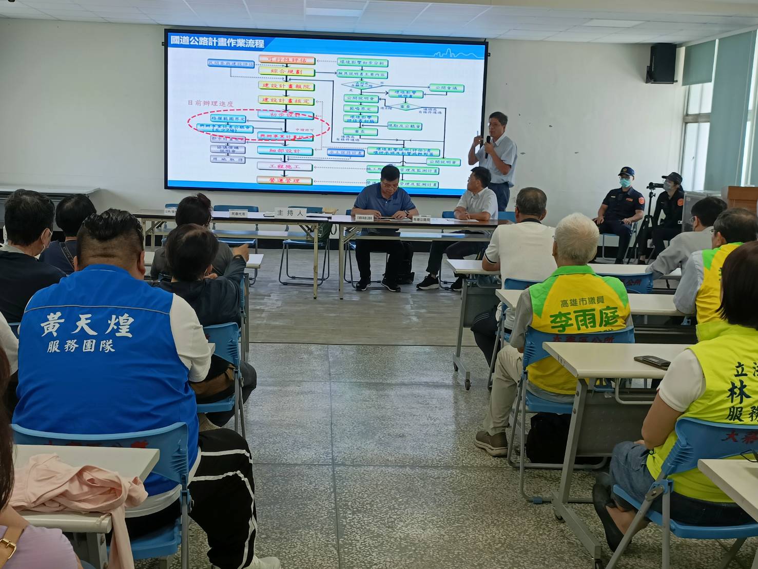 居民們說,高公局違法便宜行事,國道七號未依程序更改路線即為違法,罔顧優化路線沿線居民健康與安全,依法高公局應申請重新環評。高公局去年召開公聽會時,口口聲聲說優化路線尚未定案,實際上在公聽會召開前,已經在優化路線上完成埋設「國道七號高雄路段新建工程」地樁,明顯欺騙參加公聽會的民眾。