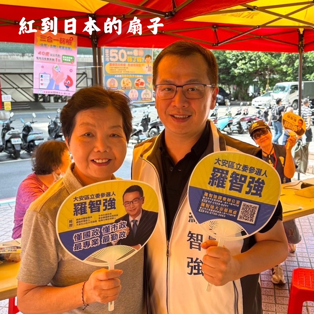 「我一邊逛街,一邊搖扇子,既可以降溫消暑,還非常吸睛,因為日本人會感到非常好奇這是什麼扇子?有人會向我借去試搖一下,也有人會納悶,扇子上的人是誰?我就會告訴他們,這位是台灣的立法委員羅智強,幫忙打廣告!」