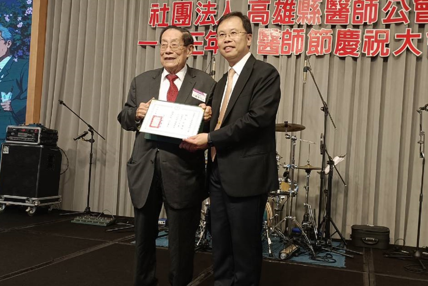 高雄縣醫師公會慶祝醫師節表揚行醫一甲子的邱永仁會場充斥下屈市長爭取支持聲