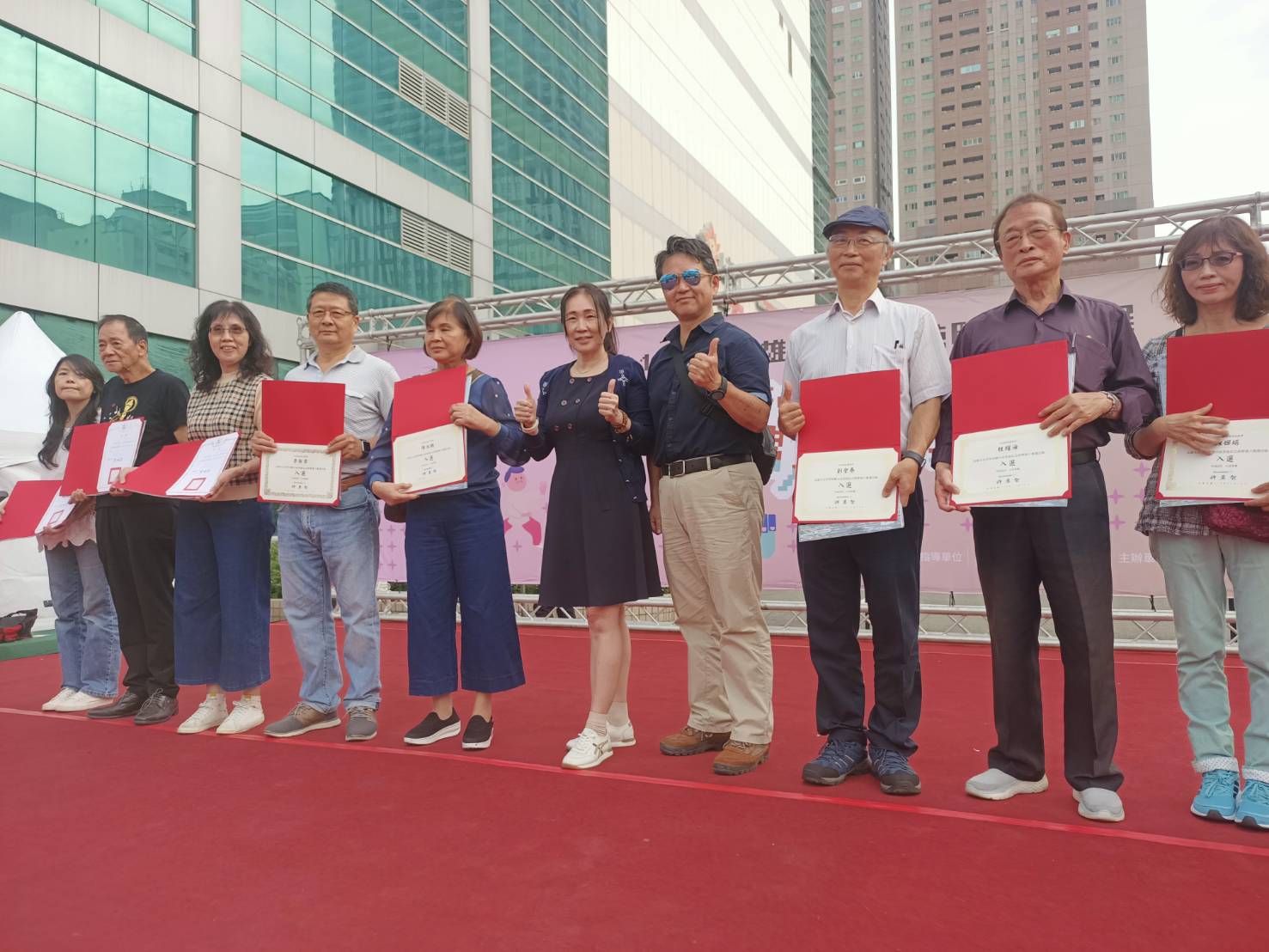圖:林洲安博士(右五)與優秀才藝長者合影。