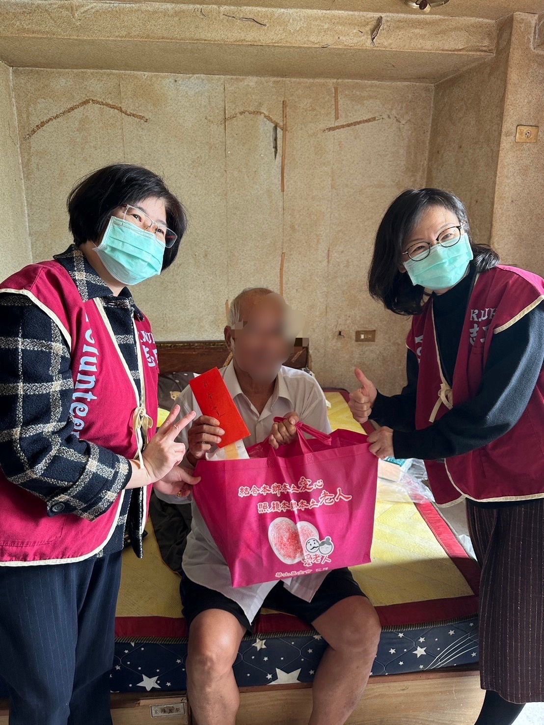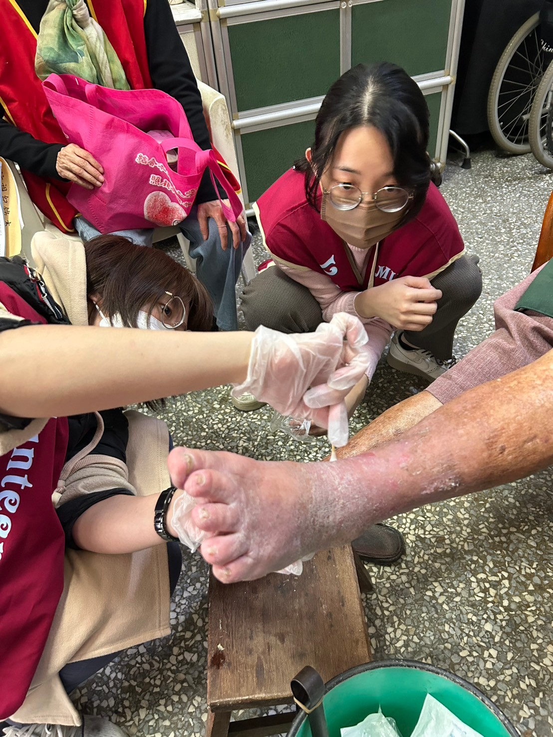 另外,112年發起的「高興有您醫起扶老-WE CARE關懷社區獨居長者」專案,計有18位院內專業醫護同仁每月利用休假擔任居家訪視志工,跟隨華山基金會三民二愛心天使站人員到宅關懷社區的獨居長者,高醫醫護同仁會協助長者查看藥品的有限期限、關懷長者用藥狀況,若有需要也會協助傷口換藥,華山基金會也能快速與醫院社工師合作,提供即時、妥善的資源與服務。至113年12月底已進行54次訪視、共269