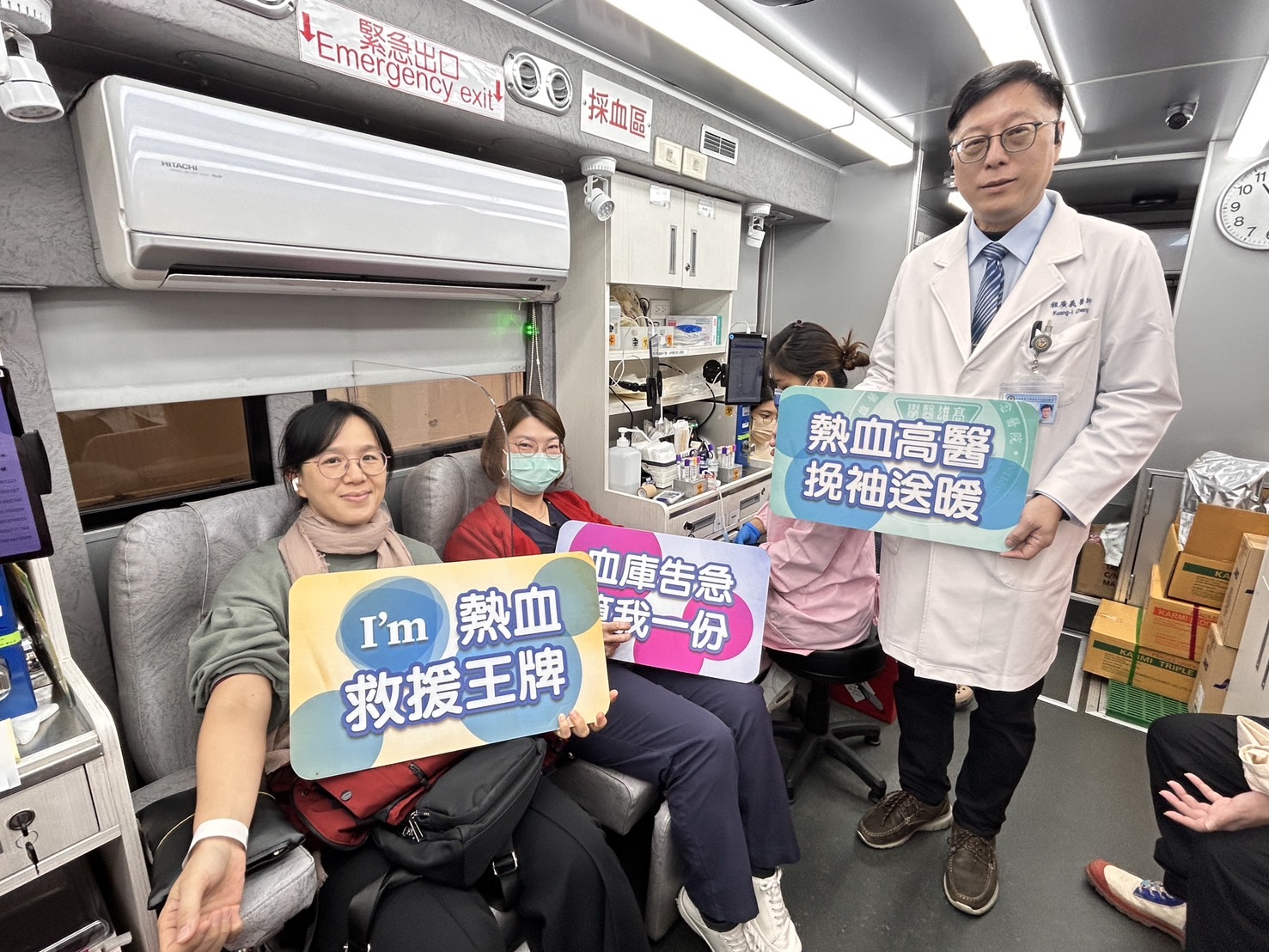 高醫還有「挽袖捐血醫起來」專案。111年9月獲悉高雄捐血中心血源短絀消息後,了解COVID-19疫情降低民眾前往捐血中心捐血意願,致使捐血中心面臨30年來血液庫存的新低點,嚴重衝擊各醫療單位用血需求。為協助高雄捐血中心募集血袋,111年10月即發起「挽袖捐血醫起來」員工挽袖捐血活動,至113年12月底共計舉辦7場,員工參與人次達763人次,累計共捐出929袋,貢獻高雄捐血中心232,250cc的員工熱血。