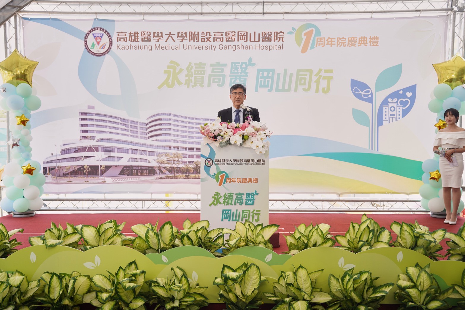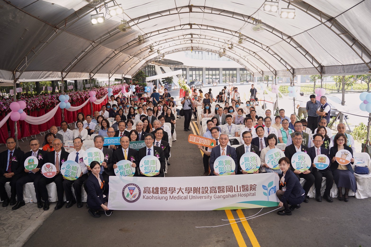 高雄醫學大學附設高醫岡山醫院1周年院慶典禮8日熱鬧揭幕,上百位各界嘉賓、體系首長、在地人士及區里長、民眾到場,共同見證生命之樹啟動,以「從種子到大樹」為意象,象徵醫院在在地民眾的支持下逐步茁壯,邁向卓越。