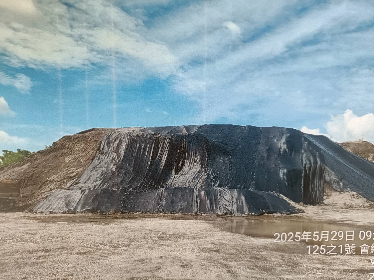 環保局表示,接獲檢舉案,就前往地勇公司的爐渣場查處,地勇公司雖沒有依規定完全覆蓋,但有噴防止飛揚的噴劑,減少粉塵,已限期改善,業者已清除完五處,還有一座爐渣山未清除最近會再前往現場了解,未達要求即依法告發。