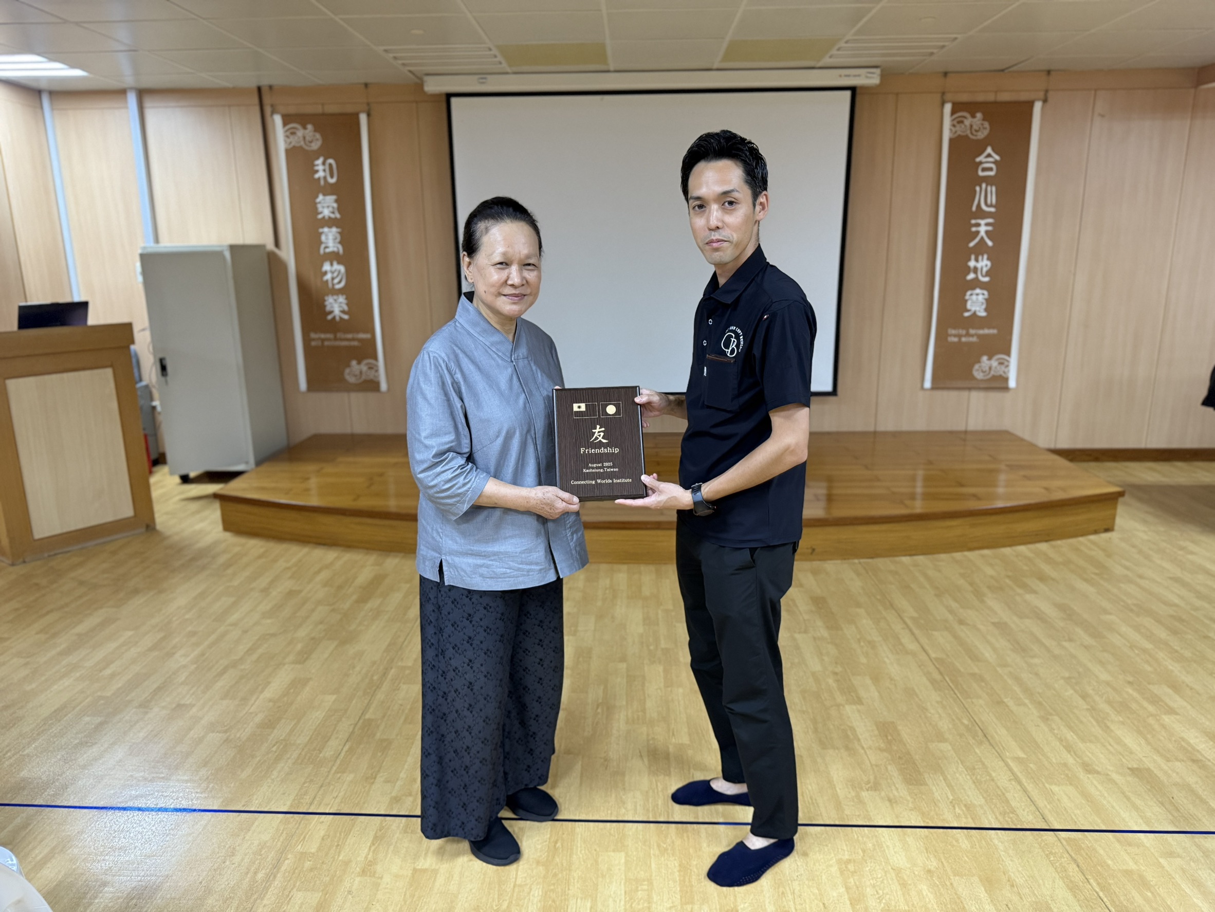 慈濟高雄公傳鄭楊慶表示,高雄天然災害應變中心召集人潘機利,非常重視與歡迎,北海道消防廳奧村拓也等一行人到靜思堂的造訪,特別自仍率領在台南災區修繕團隊施工的空檔,趕回靜思堂向來訪的日本友人致意,而負責整個接待行程窗口的是林宇荊師兄與負責介紹導覽的志工丁雪玉師姊,為了讓日方在參觀過程中有所收獲,更是用心的將慈濟研發的器材一一展示與解說。最後雙方互贈結緣品,日方送給高雄靜思堂一個刻有「友」字的匾額,象徵台日雙方友好情誼,也呼應聯合國永續發展目標第十七項 SDGs17 –全球夥伴關係,為全球人類的幸福一起努力。