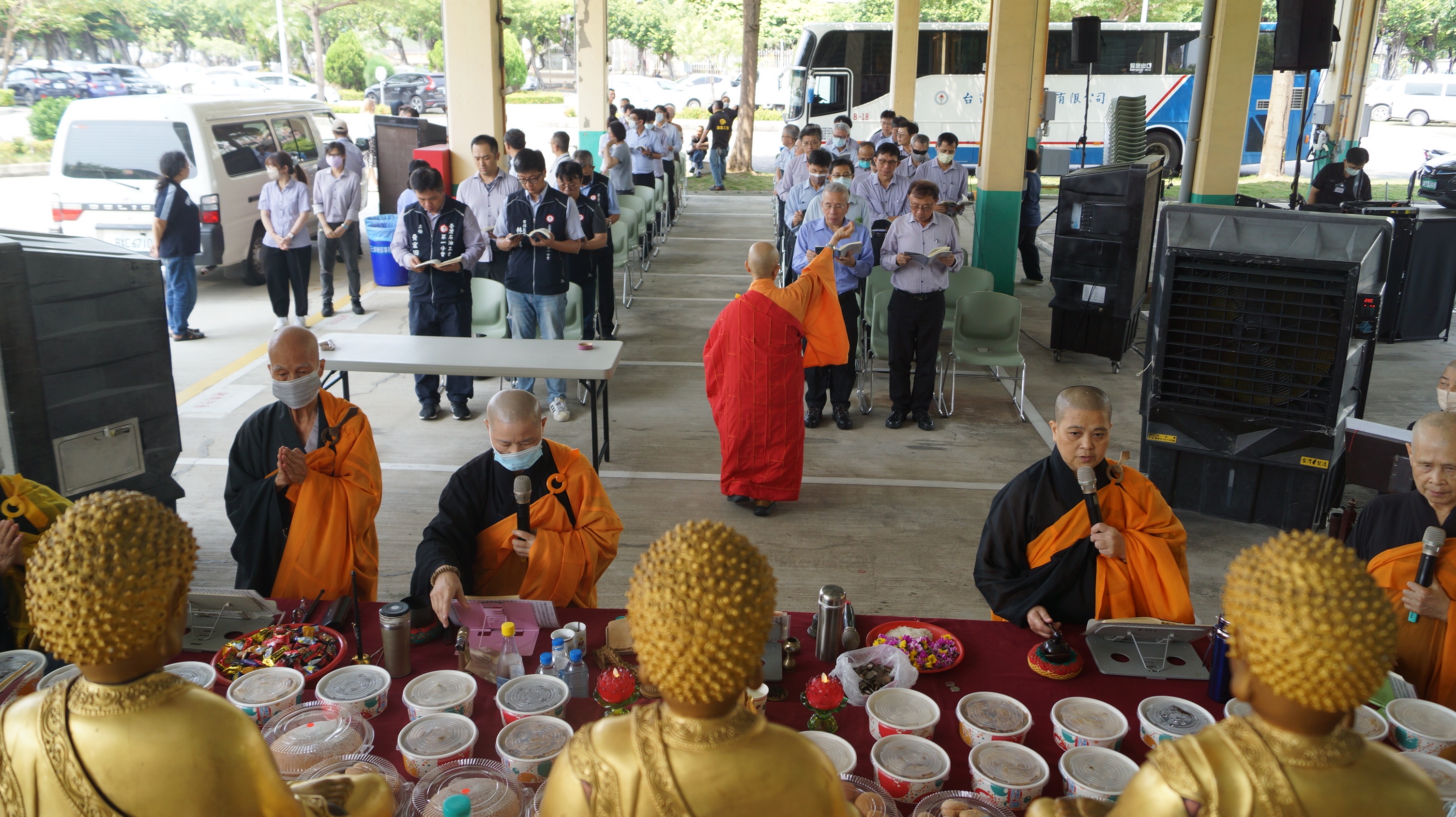 儀式於下午1點正式開始,現場佈置莊嚴肅穆,備有鮮花、素果、米糧、罐頭、素粽與糕點等豐盛祭品,並設置往生壇與普施壇,期盼藉由超渡儀式,化解眾生業障、解脫煩惱,超生淨土,離苦得樂。法師引領與會者依序獻花禮拜,在莊嚴的大悲咒梵音中,進行廠區灑淨儀式,為操作安全與人員安康祈求護佑。