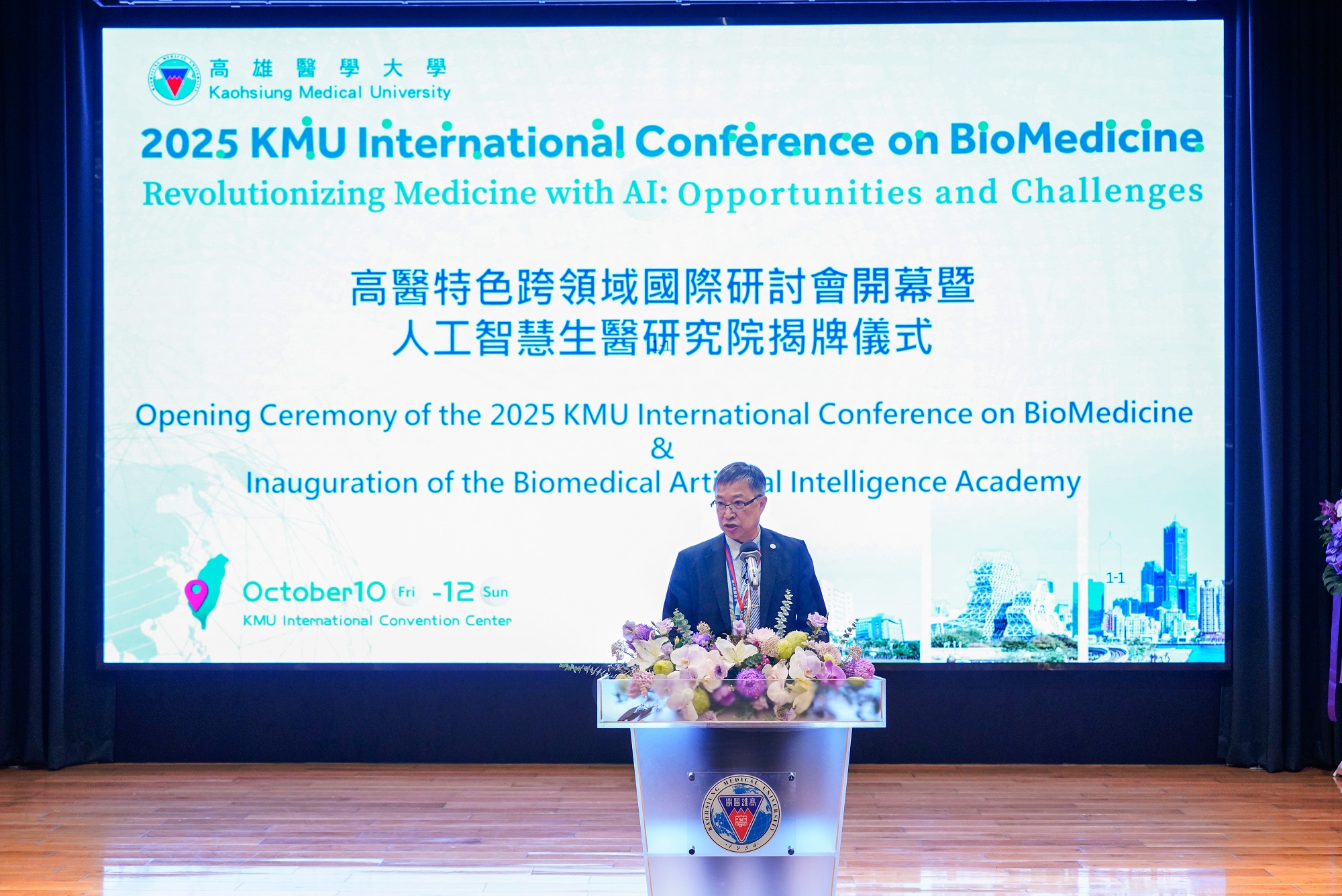 高雄醫學大學於2025年10月10日至12日辦「2025高醫特色跨領域國際研討會(2025 KMU International Conference on BioMedicine, ICOBM)」,並於開幕式舉行「人工智慧生醫研究院」揭牌典禮,宣示高醫大正式邁入智慧醫療與跨領域創新研究的新階段。