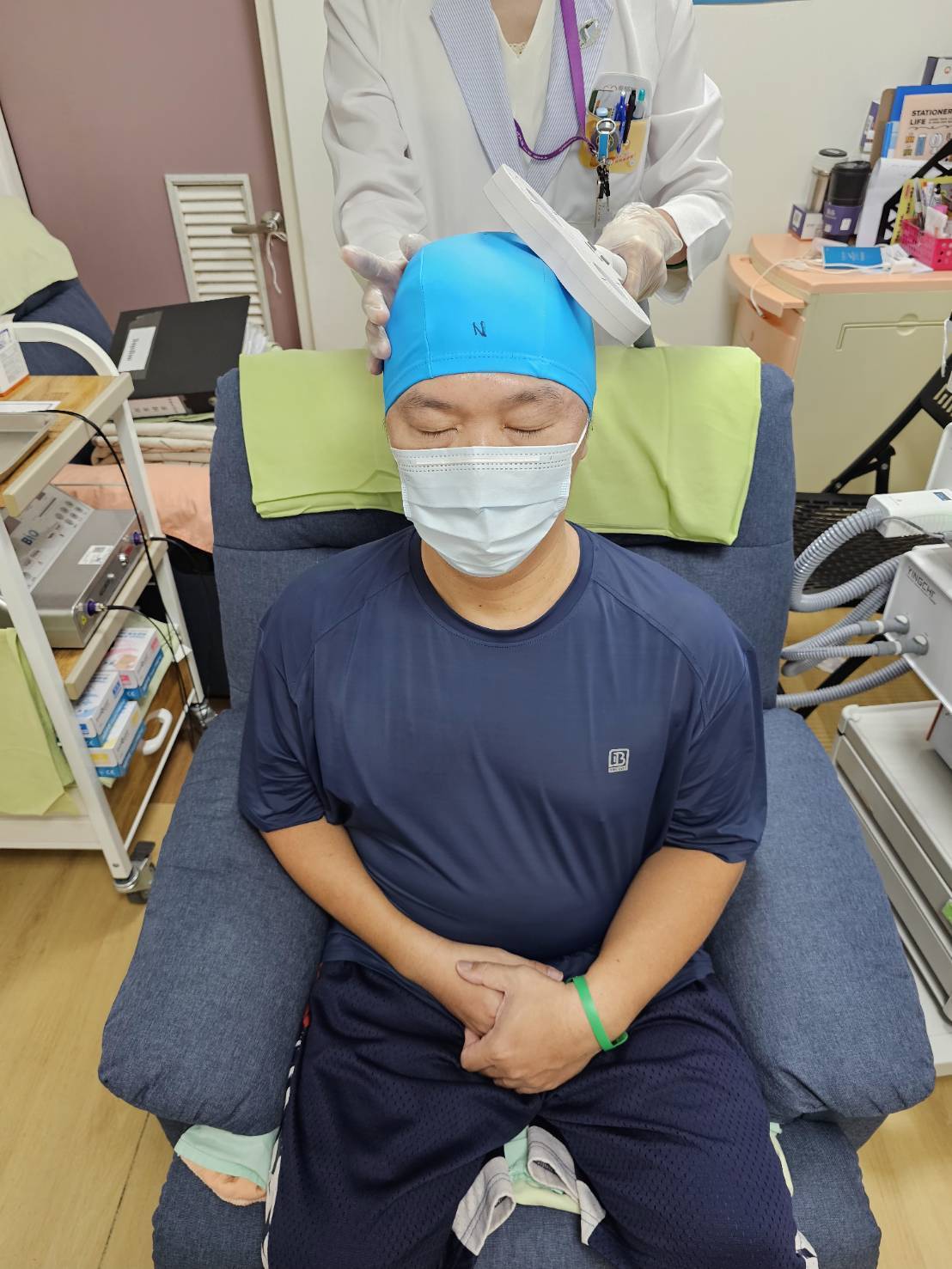 48歲的謝先生,今年6月底因急性缺血性腦中風造成右側偏癱及臉部麻痺,在高醫急診接受血栓溶解劑治療後住院,住院中生活自理方面幾乎都需要依靠他人協助。轉入復健部病房後,醫師安排rTMS治療,並結合多職類復健介入後,右側手腳功能逐步改善,巴氏量表(Barthel Index)由35分(重度依賴)逐漸提升至70分(中度依賴)。目前他已能獨立完成大部分日常活動,並分享自己的康復經驗。
