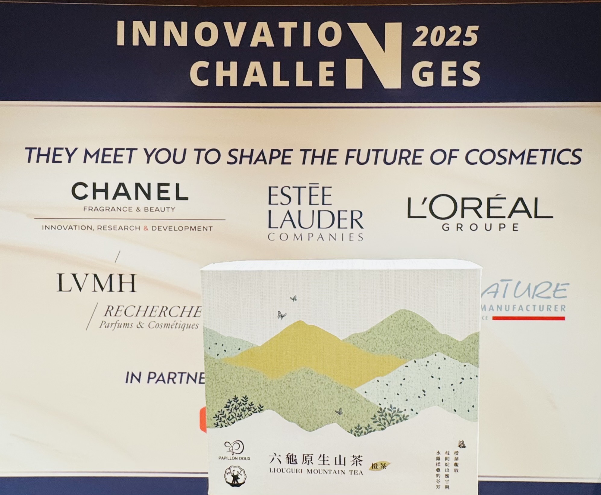 新發社區「六龜原生山茶」拓展國際知名度,透過農業部農村水保署計畫支持,除了以「六龜橙茶」榮獲ITI比利時國際風味品質評鑑3顆星最高評價;更在農業局牽線媒合下嘗試跨界合作,這次在美妝界與亞灣新創香氛品牌「PAPILLON DOUX」創辦人許智傑博士合作,研發橙茶、青茶、紅茶三種山茶香氛禮盒,於禮盒設計上可前後連接以六龜連綿山峰與紫斑蝶為意象,融合日式簡約風格搭配俳句題字,塑造出高雅脫俗的清麗感,並帶著這款禮盒登上10月15至16日由法國香水化妝品產業協會Cosmetic Valley在巴黎羅浮宮舉行的「Cosmetic 360」展覽會,讓260多家參展商及超過5000位觀展來賓感受到高雄山茶獨特香氣的魅力。