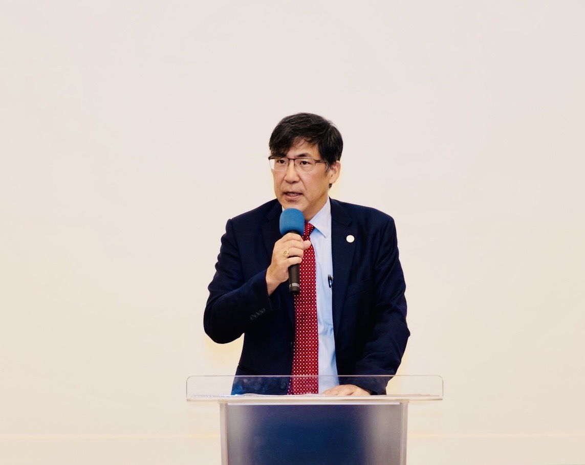 高雄醫學大學附設中和紀念醫院王照元院長致詞時,以「候鳥V字編隊」比喻高醫體系的團隊精神,強調每一間體系醫院都在自己的崗位上發揮所長、互相補位、彼此成就,形成共飛共榮的強大陣型。他指出:「我們改變的速度,決定我們的高度。」王院長更提出三項具體行動方向:包括數位轉型與AI加速、文化領導與執行加速、人才穩定與組織備援,期勉大家以智慧工具提升效率,讓醫療人員專注於最重要的照護;鼓勵跨院協作、資料共享、行動導向;更重要的是建立接班梯隊與專業進修機制,強化組織韌性,他更以「用智慧領航、以行動成就健康永續」作結論,凝聚全體主管的使命感與行動力。