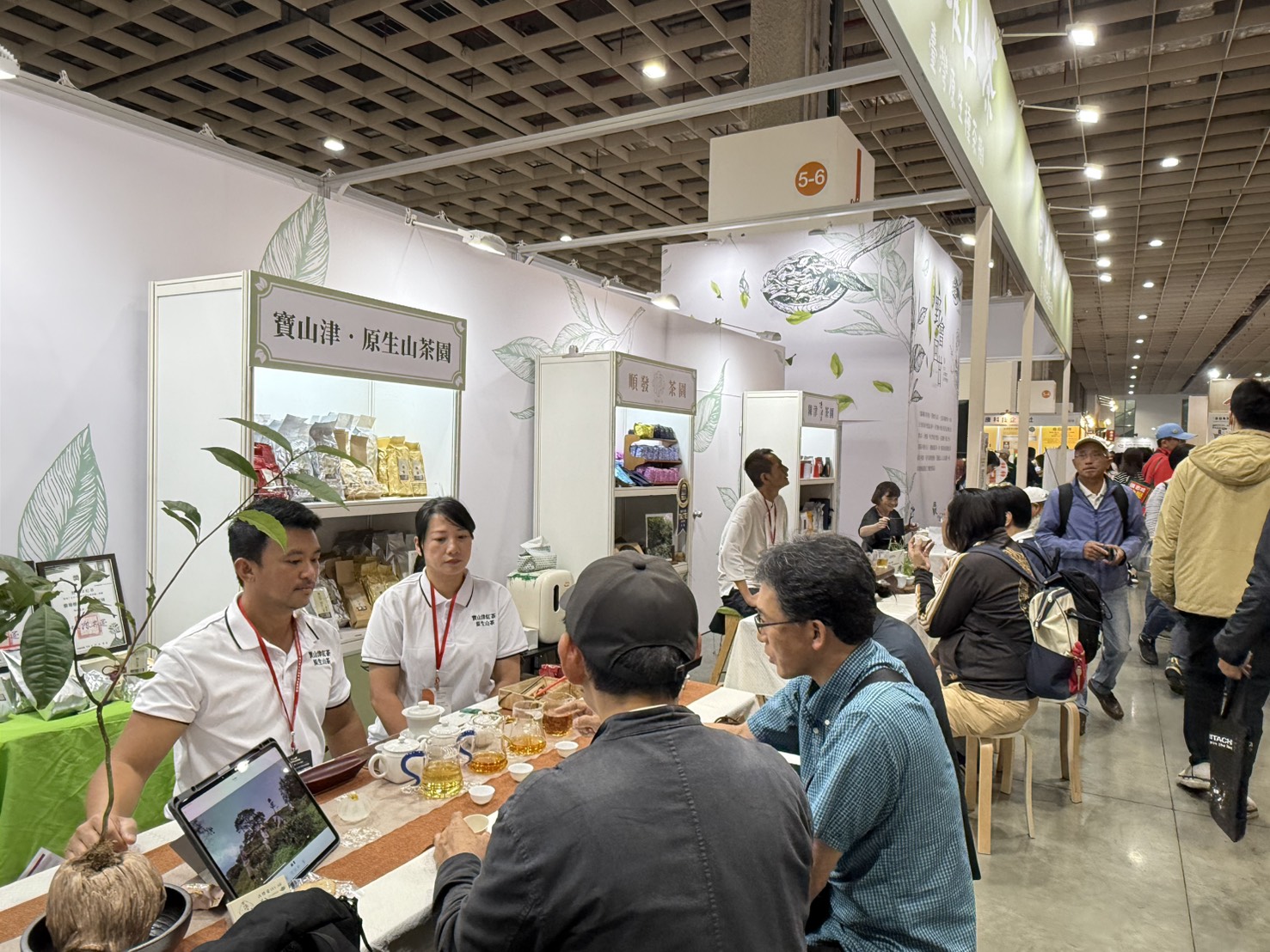 在今年的博覽會上,高雄山茶館集結多家在地茶農與品牌共同參展,包括六龜山茶故事館、拙璞山茶、順發茶園、燿興原生山茶咖啡工坊、寶山津原生山茶園及那瑪夏陳津茶園等。現場除展售多款特色山茶外,並安排茶師親自泡茶示範,帶領民眾體驗「聞茶香、觀茶色、品茶湯」三步驟品茗儀式,從茶湯色澤到香氣轉化,帶給人沉浸式的感官饗宴。盼能讓更多人了解高雄山茶兼具質與量的手作精神,體會一杯茶背後的自然循環與人文故事。