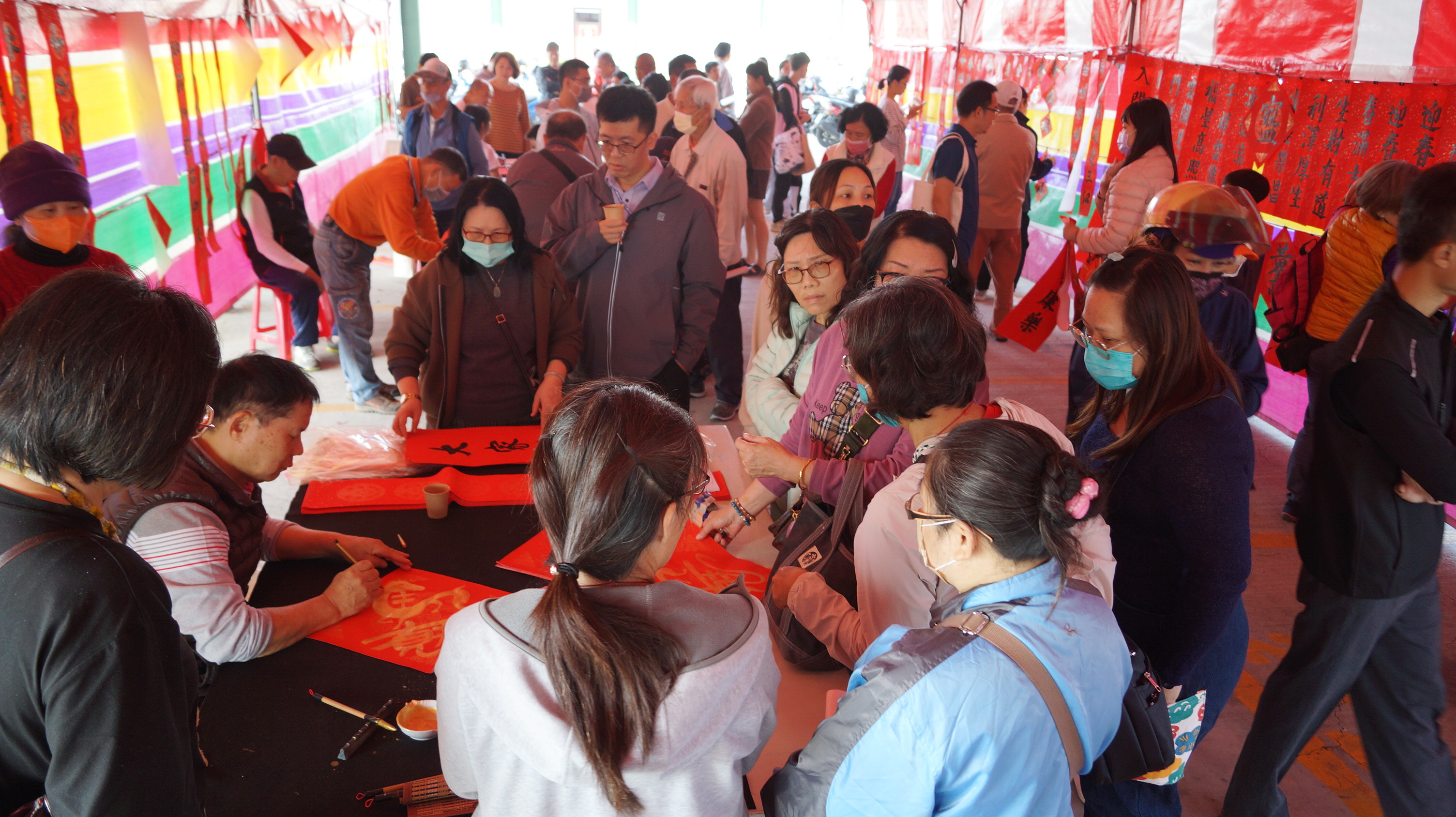 活動現場氣氛熱絡,許多民眾一早便前往排隊等候。書法老師們專注揮筆,將新年祝福一筆一畫融入春聯之中,不同字體與風格各具特色,也讓前來索取春聯的鄉親在欣賞書法藝術之餘,更感受到傳統文化的魅力。
