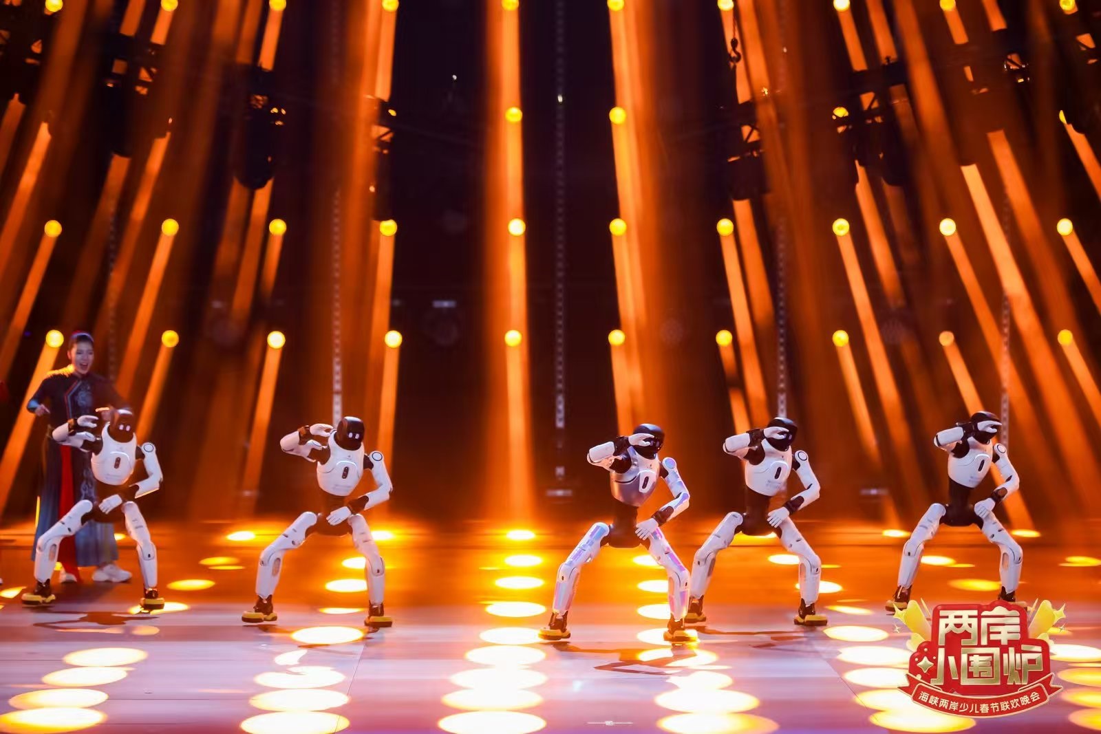 的融合在本場晚會中達到全新高度。晚會推出的“機器人天團”成為一大亮點——6台人形機器人協同2台馬年限定扮相的機器狗,在各個內容環節中展現精准表演能力。