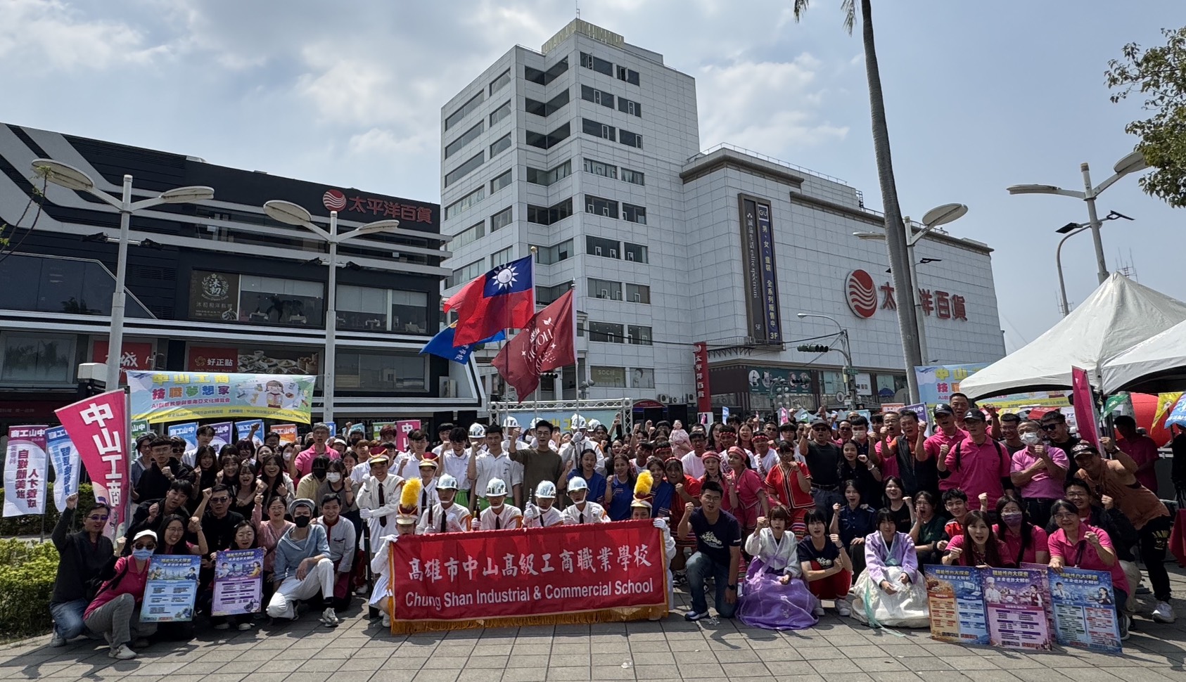 【本報記者陳明成高雄報導】高雄市中山工商14日在屏東公園椰林大道舉行盛大的2026「技職夢想家—AI創意教學與東南亞文化博覽會」,現場熱鬧滾滾,16十六個科二十個攤位結合AI科技、手作實作、美食試吃、異國文化等展現各科特色,並安排精彩社團表演與豐富摸彩活動,鼎泰豐實習學生演示小籠包「黃金十八摺」神技,整場活動兼具教育性與娛樂性,宛如嘉年華會,吸引滿滿人潮。
