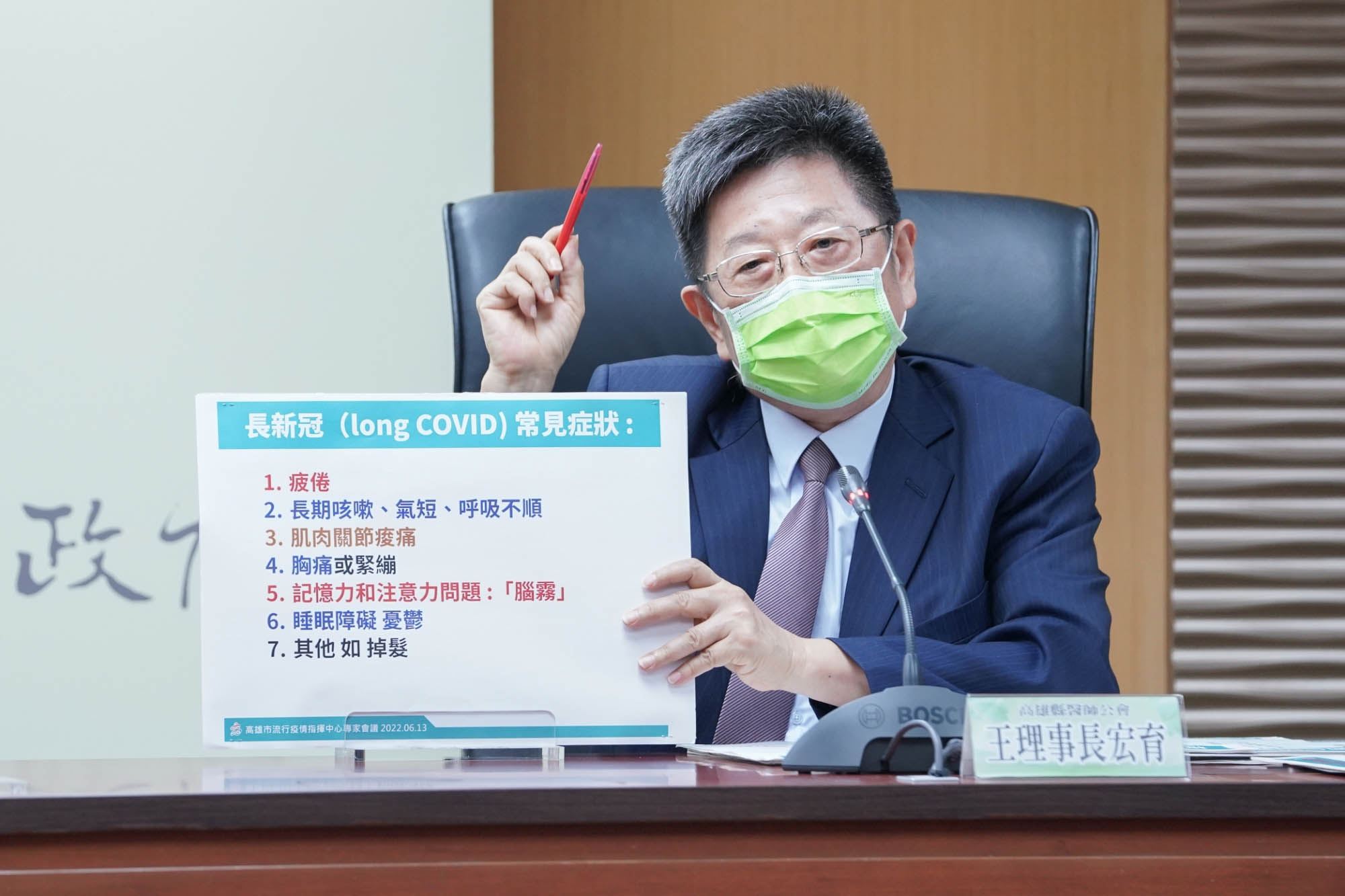今日也邀請高雄縣醫師公會理事長王宏育醫師,詳細解說長期新冠(long COVID)常見症狀、容易發生族群,及如何防治方式,他說,在罹患COVID病毒3個月內出現不舒服症狀,且持續至少2個月,並無法由其他診斷解釋才歸為長新冠,症狀包括疲倦、長期咳嗽、氣短、呼吸不順,肌肉關節酸痛、胸痛或緊繃,有記憶力或注意力問題俗稱「腦霧」,睡眠障礙、憂鬱或掉髮。根據美國CDC資料,較可能出現長新冠者為重症者尤其曾經住院者、感染新冠前已有慢性病、未接種疫苗者,或出現多系統發炎症症候群等。