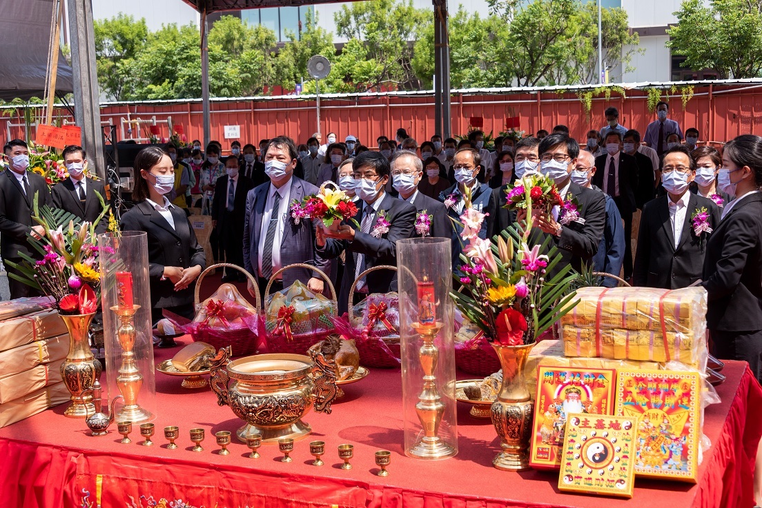 今天的上梁儀式,由市長陳其邁、高雄醫學大學董事長陳建志擔任主祭者,副議長陸淑美、副市長林欽榮、衛生局局長黃志中、捷運工程局局長吳義隆、高雄捷運董事長楊岳崑、高雄醫學大學校長楊俊毓、高醫大附設中和紀念醫院院長鍾飲文、高醫岡山醫院籌設營運處執行長吳登強、瑞助營造總經理徐美玉、建築師許常吉和到場貴賓共同焚香祈福。