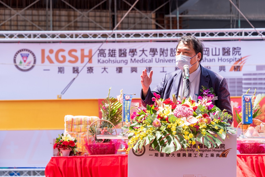 高雄醫學大學陳建志董事長表示,高醫始終扮演為民眾健康把關的角色,用心經營高雄醫學大學及所屬的每一家醫院,就在上個月附設中和紀念醫院成立65週年;由市府委託經營的小港醫院也完成新建大樓上梁典禮;大同醫院、旗津醫院也日益成長茁壯,並提供長照的服務需求。高醫沿著捷運紅線,從南到北串起體系在高雄的醫療照護網絡,讓在地居民可就近到這裡看病,甚至是搭乘捷運就可快速地進入醫院。感謝市府、捷運公司等單位在疫情期間的鼎力協助,讓高醫岡山醫院工程順利,明年5月試營運。