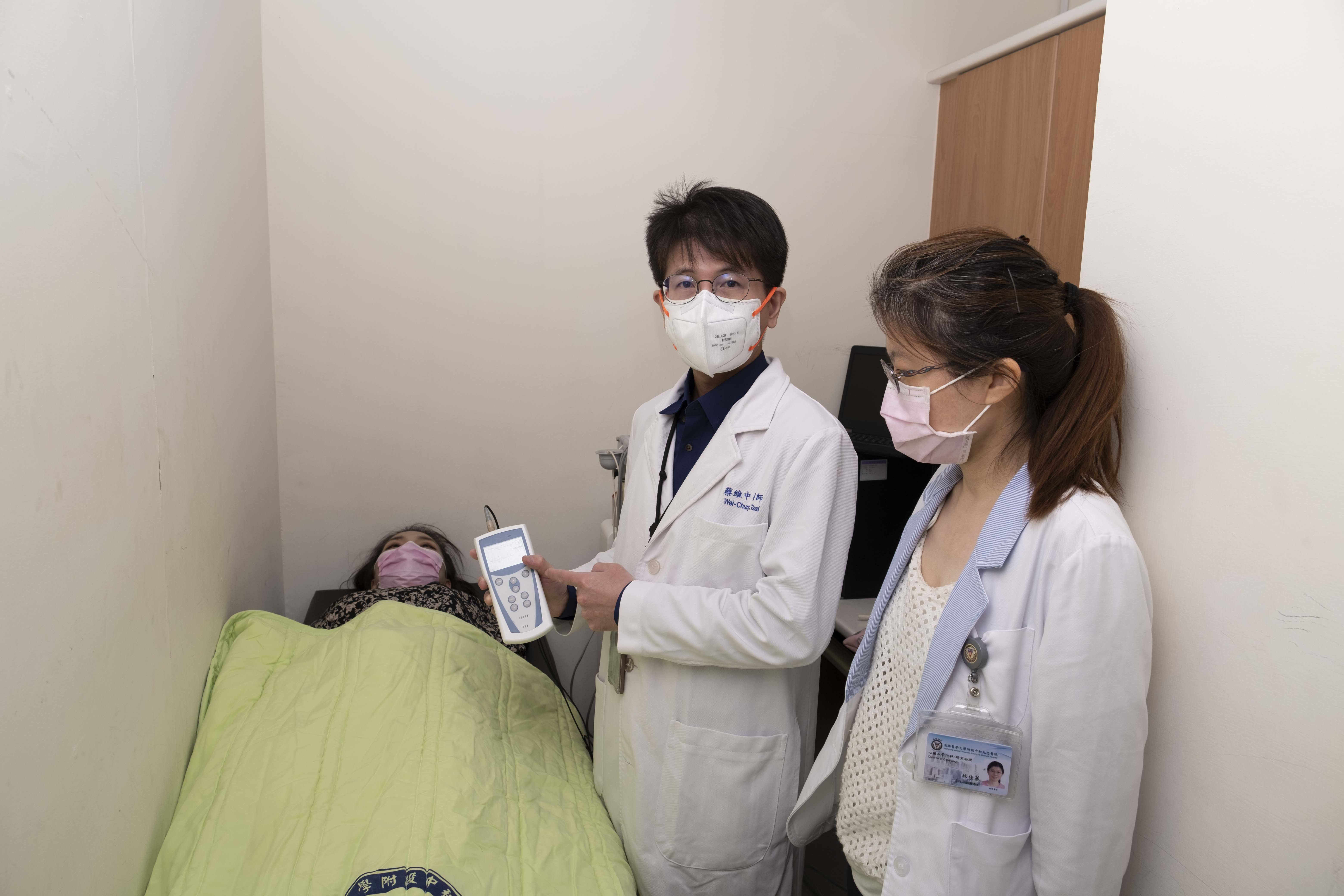 高醫心臟加護室主任蔡維中(右2)引進非侵入性的皮膚交感神經活性與心律變異檢測只需15分鐘